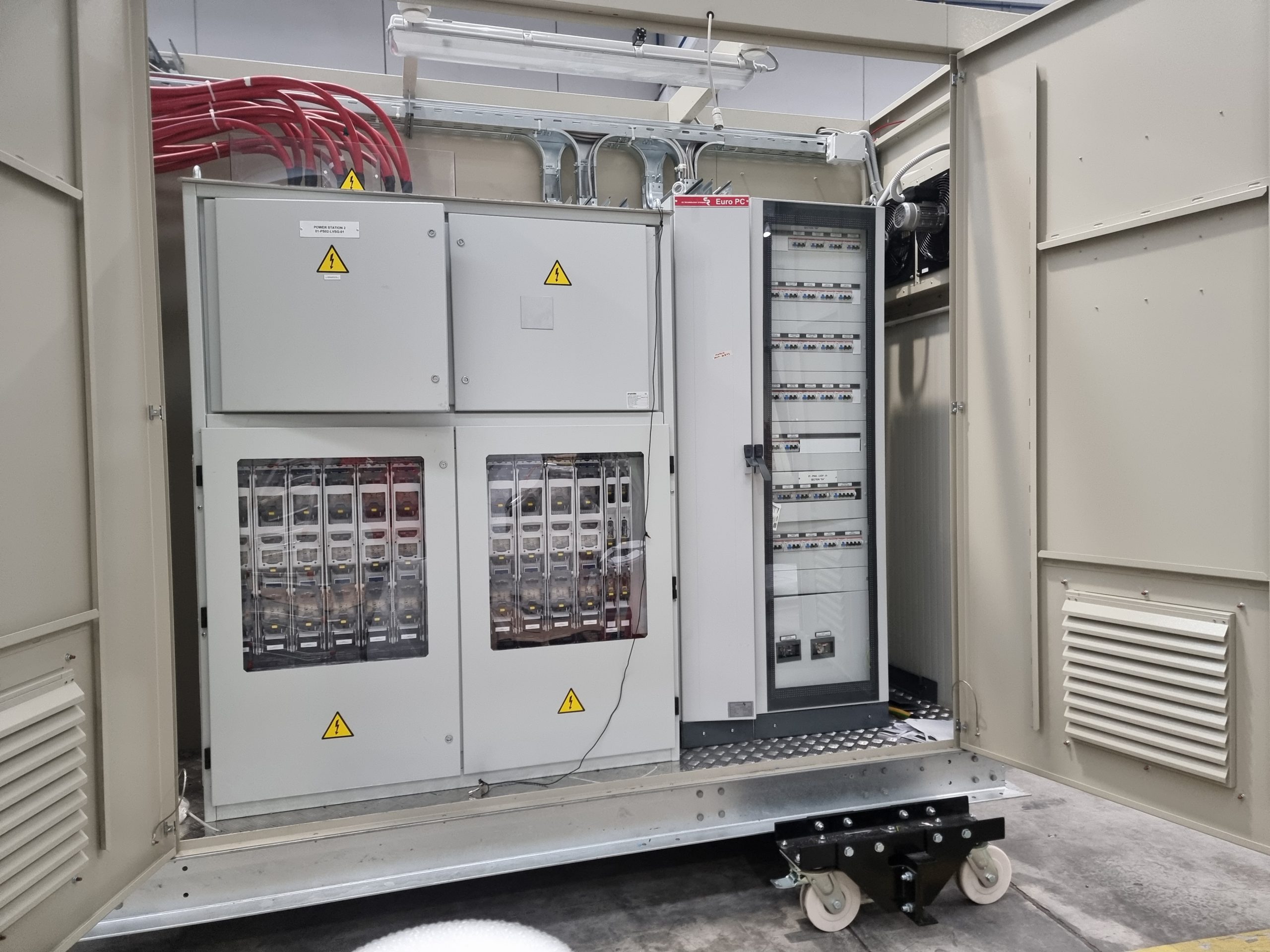 Los cuadros de distribución de 800V en AC de Pronutec estarán ubicados en las cabinas de transformación. Estos cuadros, donde se alojan en su interior las bases portafusibles para aplicaciones fotovoltaicas, serán los encargados de recibir los cables de entrada de los inversores de string, una vez hayan transformado la corriente continua en alterna, y garantizar la distribución de energía limpia a la red.